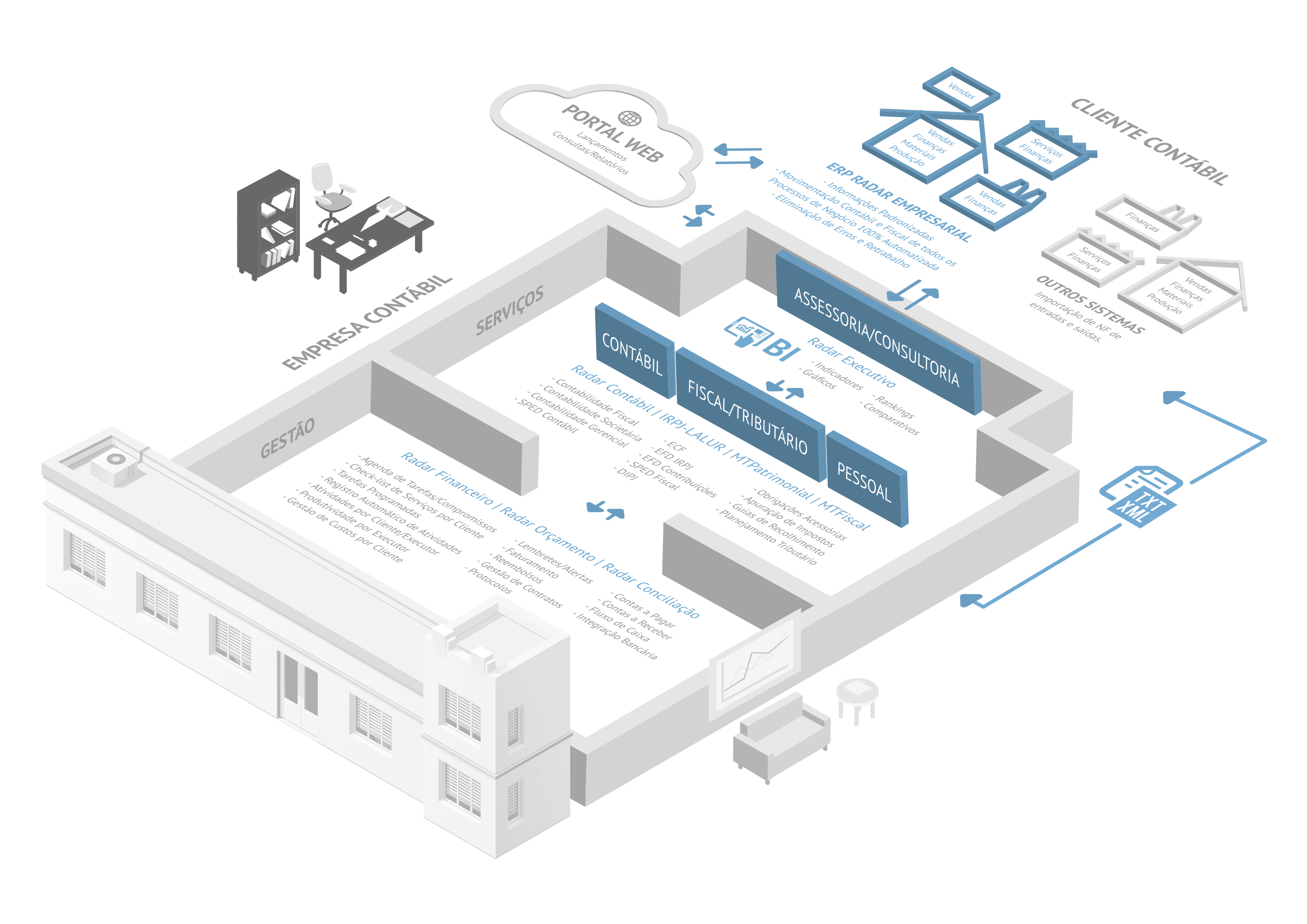 Uma solução completa, inteligente e funcional, que permite gerenciar e integrar todas as operações das Empresas Prestadoras de Serviços Contábeis.